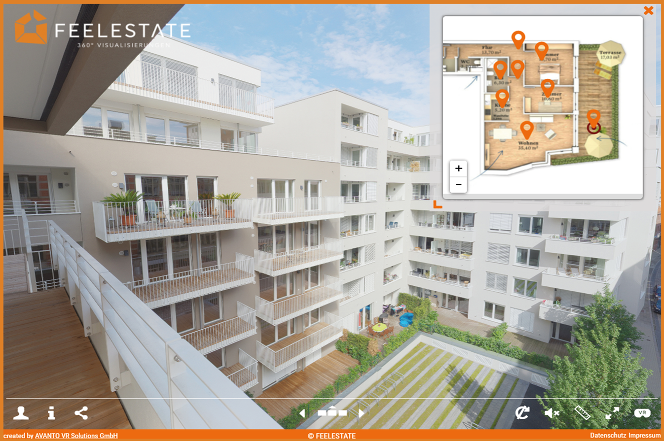 Create impressive 360° tours in record time and let prospects feel as if they are on site. With FEELESTATE you can: